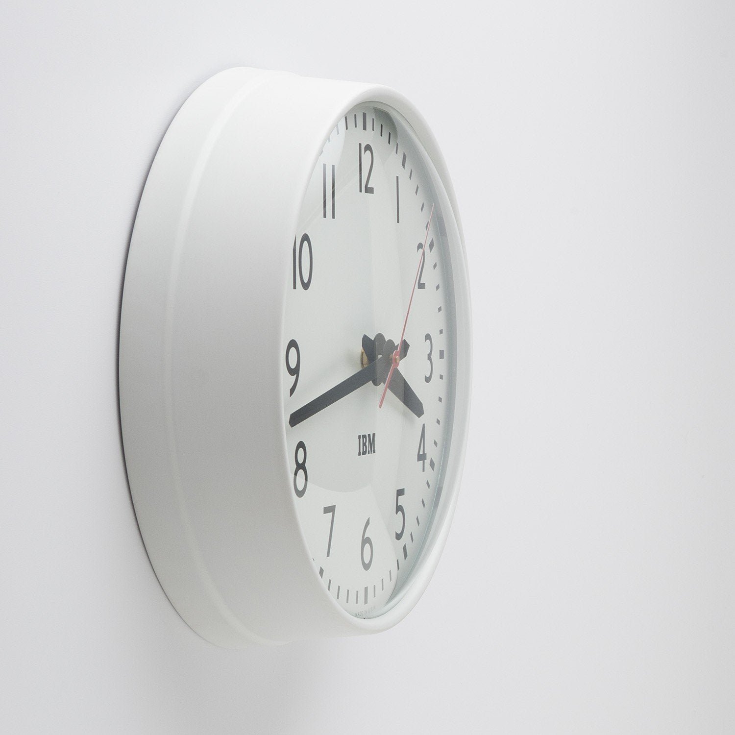 An homage to the classic IBM Indicator Clocks found in offices, warehouses, and schools during the mid-20th century, the 1960s IBM Standard Issue Clock is the ideal choice for adding a bit of utilitarian vintage flair to your walls. Handcrafted in our Portland factory, it’s constructed with a spun steel case and domed glass lens, while the dial features the original graphic treatment from circa 1947. This wall clock is operated by a quartz movement with a red, continuous sweep second hand. A Schoolhouse Exclusive.