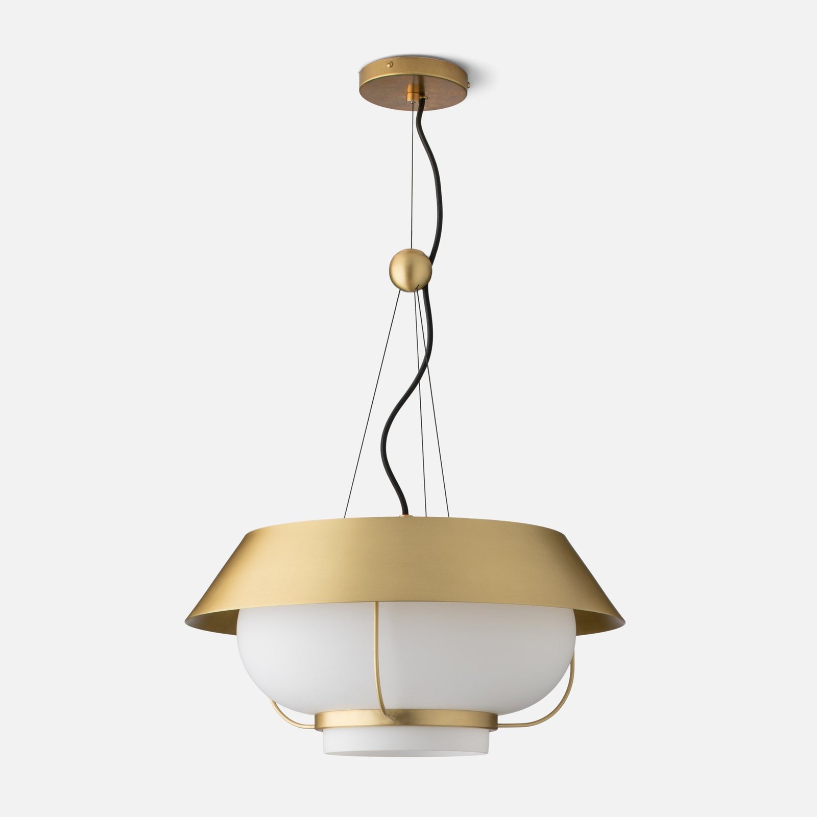 Rooted in tradition yet refined for the present, the Alfred Pendant reimagines the classic oil lantern in a streamlined, modern form. Defined by stacked geometry, simple wire detailing, and a softly glowing etched glass shade, it casts a warm, nostalgic light. Adjustable and dimmable, this versatile fixture is equally at home above a dining table, in an entryway, or as a statement piece in a kitchen. Available in natural brass or satin black finishes, it’s a timeless design made for modern living.