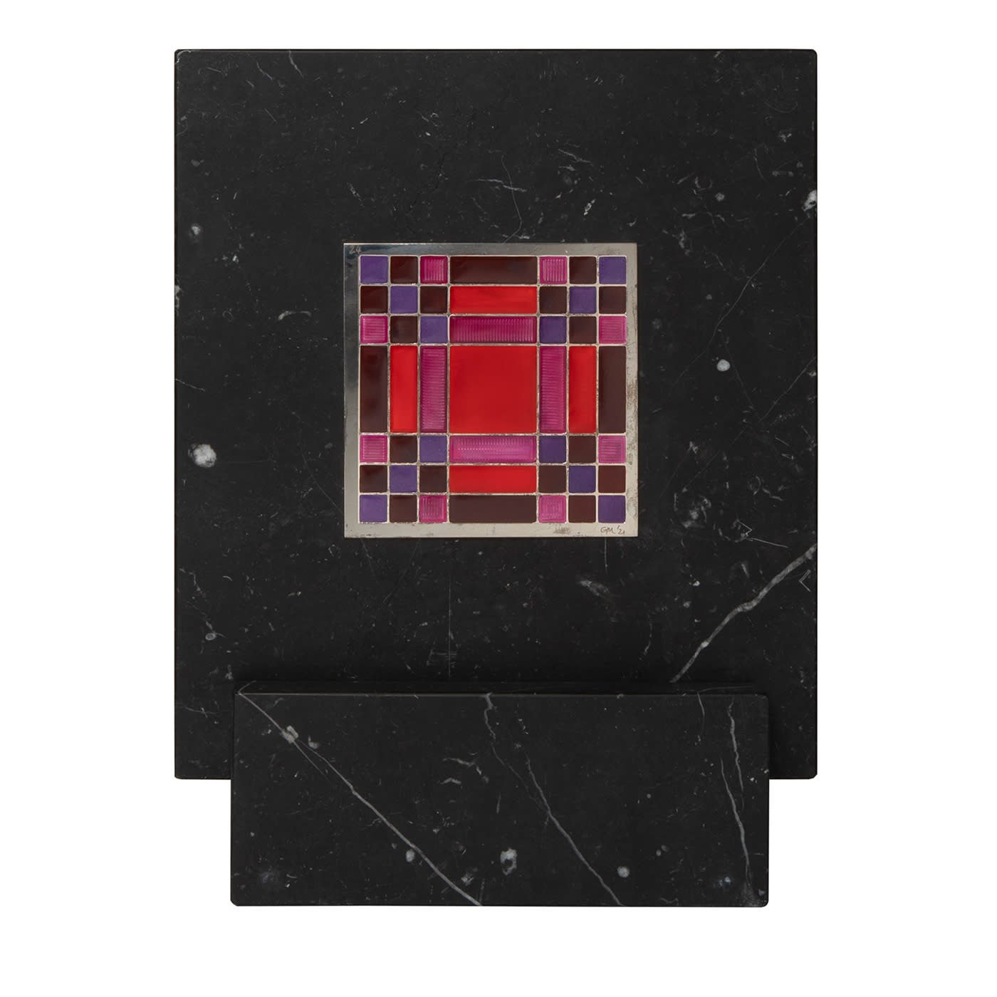 Ferrero Ventimiglia followed the ancient Cloisonné decorative technique dating back to ancient Egypt when crafting this superb object d’art. As the technique dictates, enamels get poured into cells – cloisons in French – fashioned of metal filigrees or stripes, here silver, for a splendid pattern of striking decorative impact. A prized Black Marquinia marble frame completes the design.