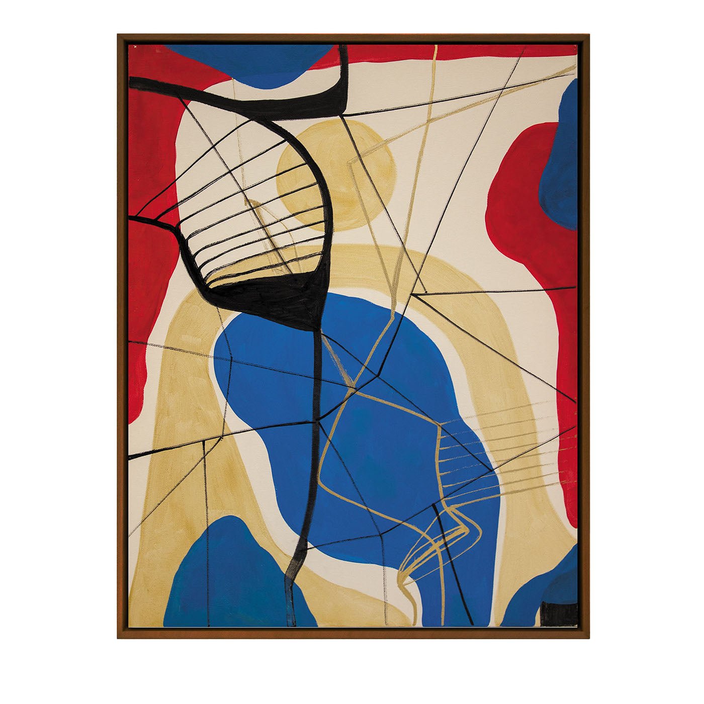 Experimental #6 features a study inspired by Kandinsky, combining acrylic and felt pen techniques. The piece is framed in natural wood with a subtle gap between frame and canvas, creating a floating effect. Its dynamic composition and layered lines offer a contemporary interpretation of abstract art. Measuring 42 cm by 32 cm, the artwork is shipped in a custom wooden box, ready for display and it’s sold with frame.