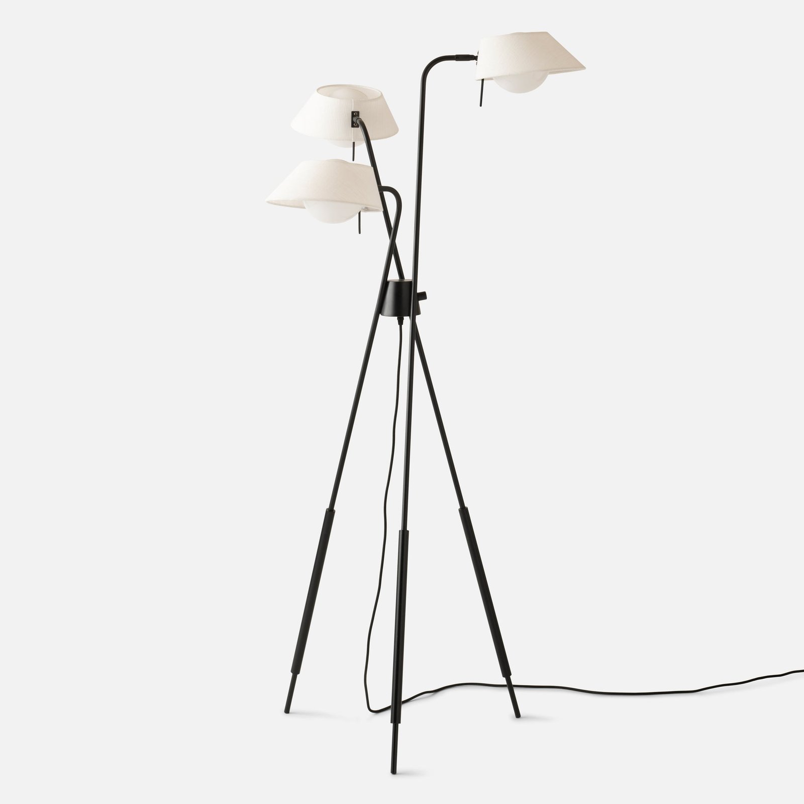 Add functional radiance to any corner with the Hala Floor Lamp. Designed with mid-century task lighting in mind, it has three fabric shades that are adjustable (just use the metal handle). Opal glass adds to its soft glow, while steel legs lend a distinctly utilitarian feel.