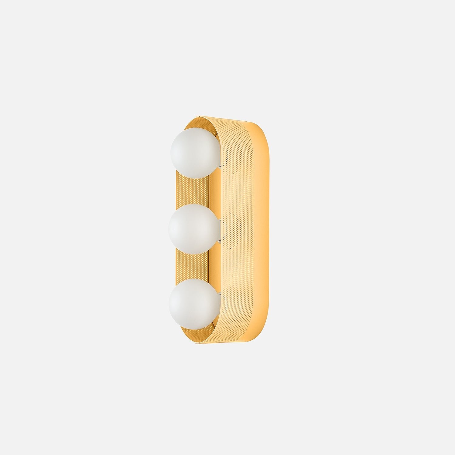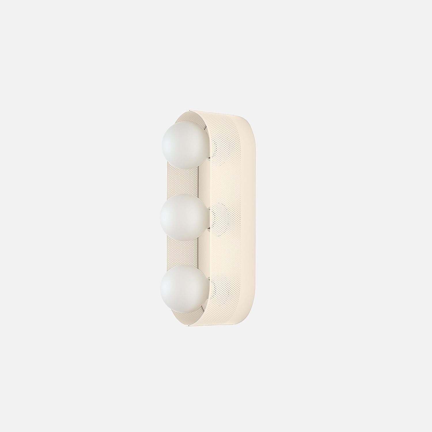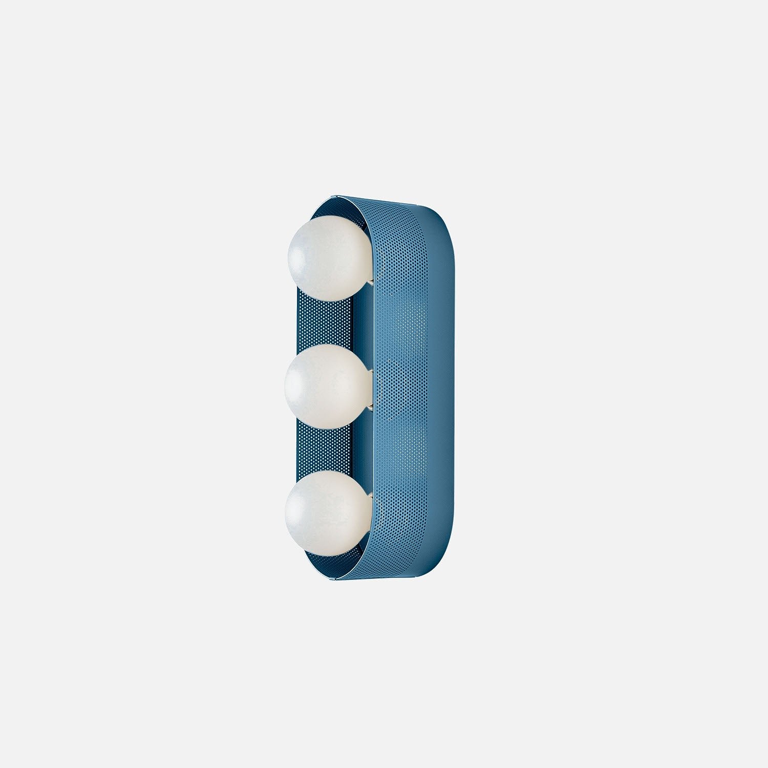 Named after iconic Hollywood actress Jean Harlow, the Harlow 3 Sconce serves as a modern update to the type of multi-bulb vanity fixture that might have illuminated her dressing room. Understated satin finish options complement perforated steel and porcelain sockets. Its unique mounting and wiring system allows for flexible placement over the junction box. Assembled in our Portland, Ore. factory using ethically-sourced domestic and global components. A Schoolhouse Original.