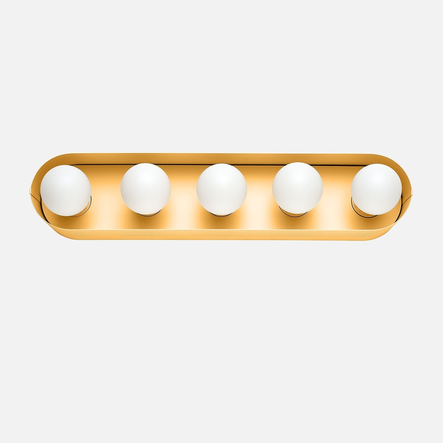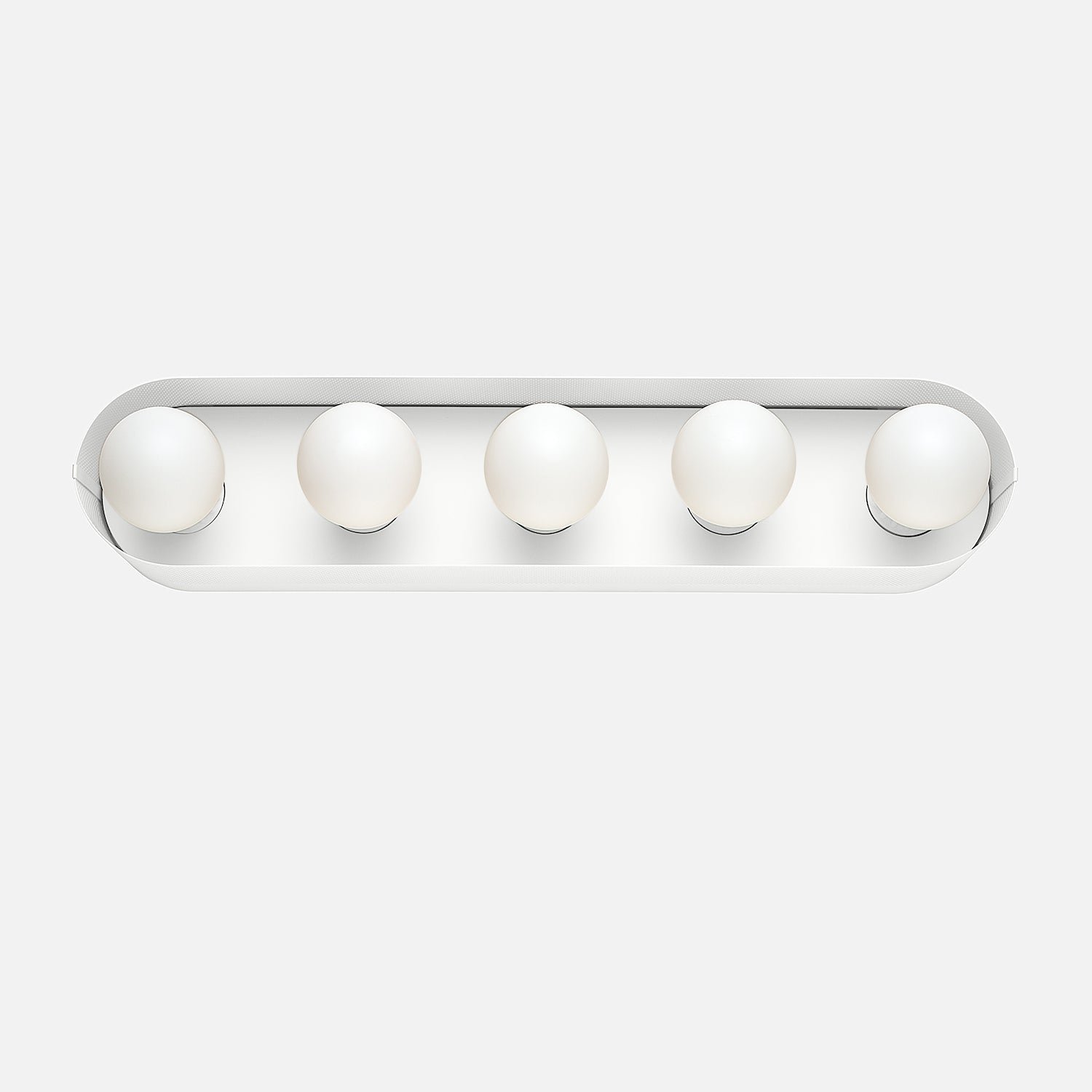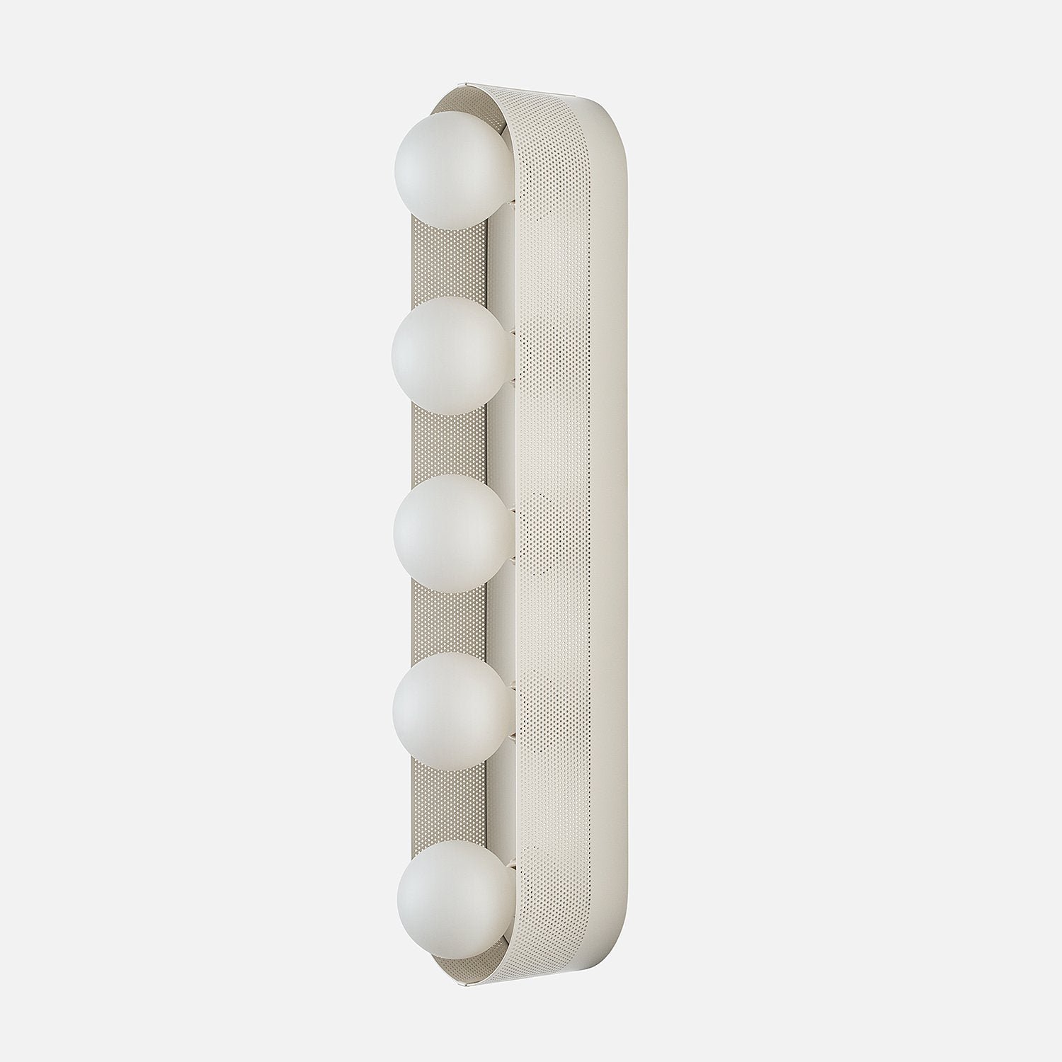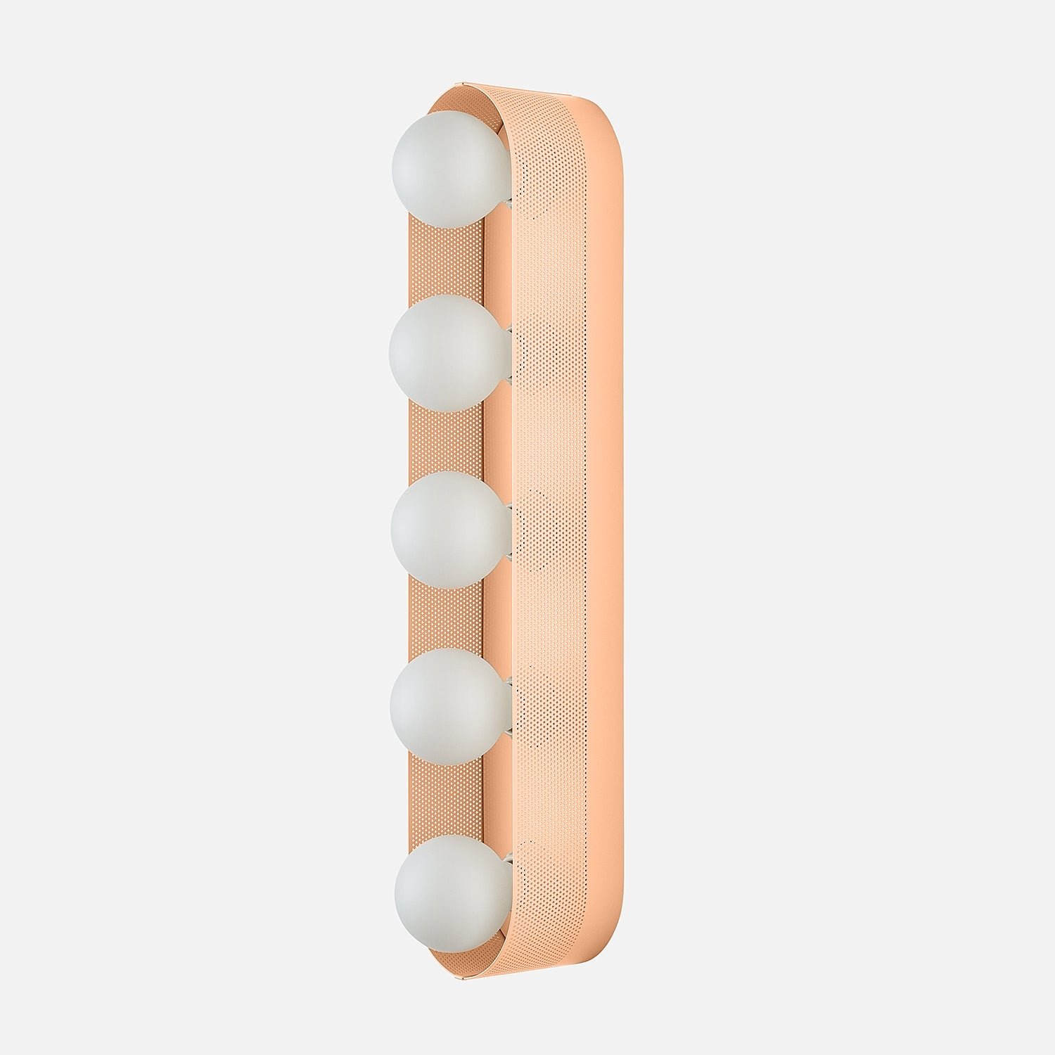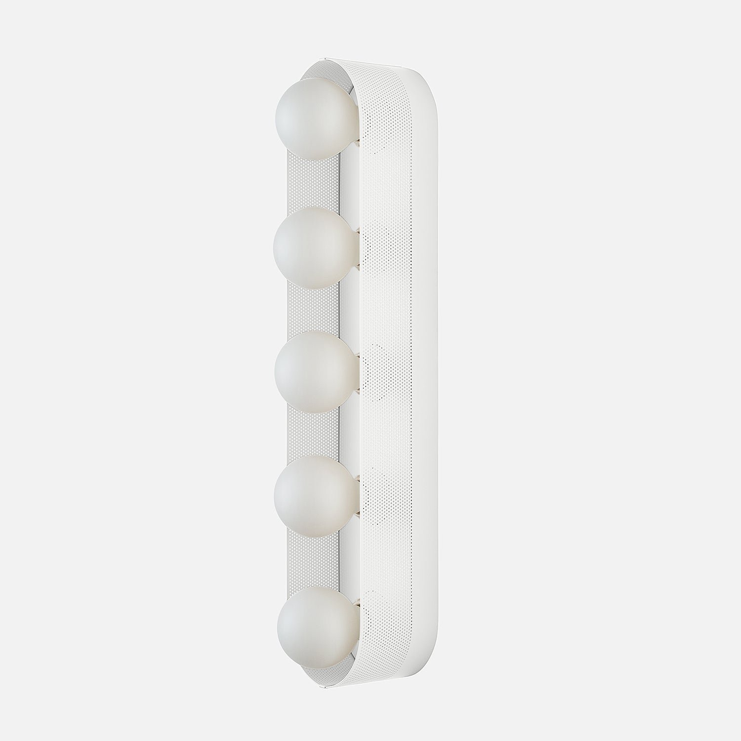Named after iconic Hollywood actress Jean Harlow, the Harlow 5 Sconce serves as a modern update to the type of multi-bulb vanity fixture that might have illuminated her dressing room. Understated satin finish options complement perforated steel and porcelain sockets. Its unique mounting and wiring system allows for flexible placement over the junction box. Assembled in our Portland, Ore. factory using ethically-sourced domestic and global components. A Schoolhouse Original.