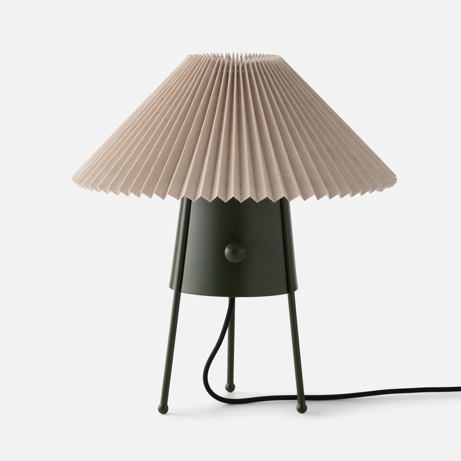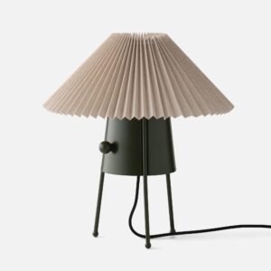 Alder green powder-coated steel base with pleated fabric shade