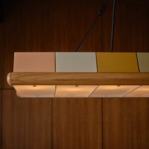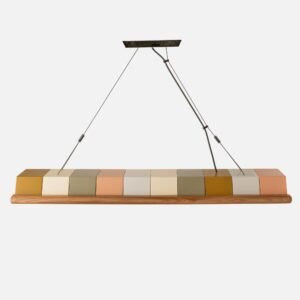 For our Roll & Hill for Schoolhouse lighting collection, we teamed up with Creative Director Jason Miller and The Roll & Hill Design Team to create the Bento 10 Chandelier. A playful yet polished light fixture inspired by designs of the past—namely Donald Judd’s practical minimalism and Le Courbusier’s tubular furniture—and the modular metal shades of Japanese lunch boxes. With multicolored painted aluminum boxes that form a bold striped pattern, and Pennsylvania-oak framing the design, this chandelier brings style to your space without making a fuss. And thanks to reeded glass, the light has a soft, inviting warmth that makes any room—from your kitchen to the dining room—feel a little more welcoming.