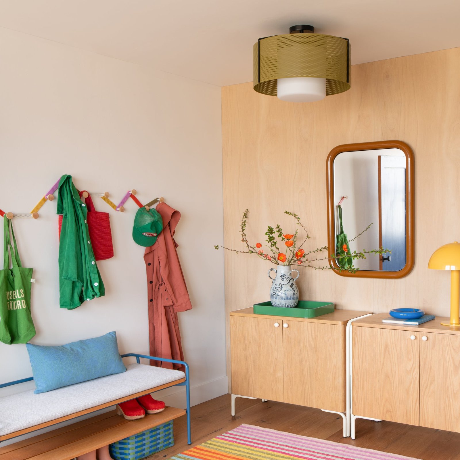 Proof that overhead lighting can be just as stylish as the rest of the room. The Swell Flush Mount pairs a frosted glass diffuser with a perforated metal shade, casting a warm glow with just a hint of transparency. A bold frame adds extra definition, making it a natural fit for hallways, entryways, or anywhere your ceiling could use a little extra personality. A Schoolhouse Original.