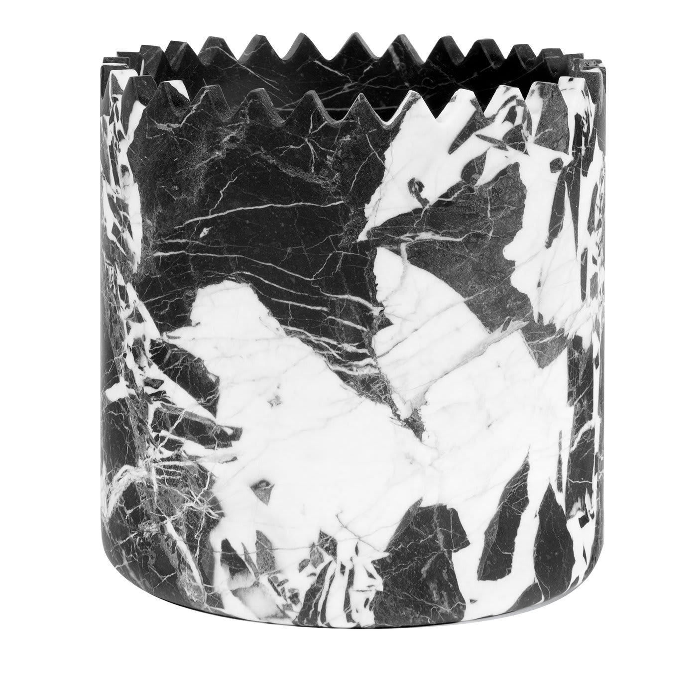 Part of the Triangoli Collection of vases and tableware by David/Nicholas, this lavish vase will be the focal point of any console, side table, or dining room table displayed with flowers or tall candles. Handmade of Grand Antique marble, the classic tall silhouette is imagined as a crown, bearing a jagged top edge and dramatic white-grey-black marbling that heightens the majesty and allure of this piece of functional decor. Subtle variations in the marbling and veining are natural signs of originality, as no two pieces are alike.